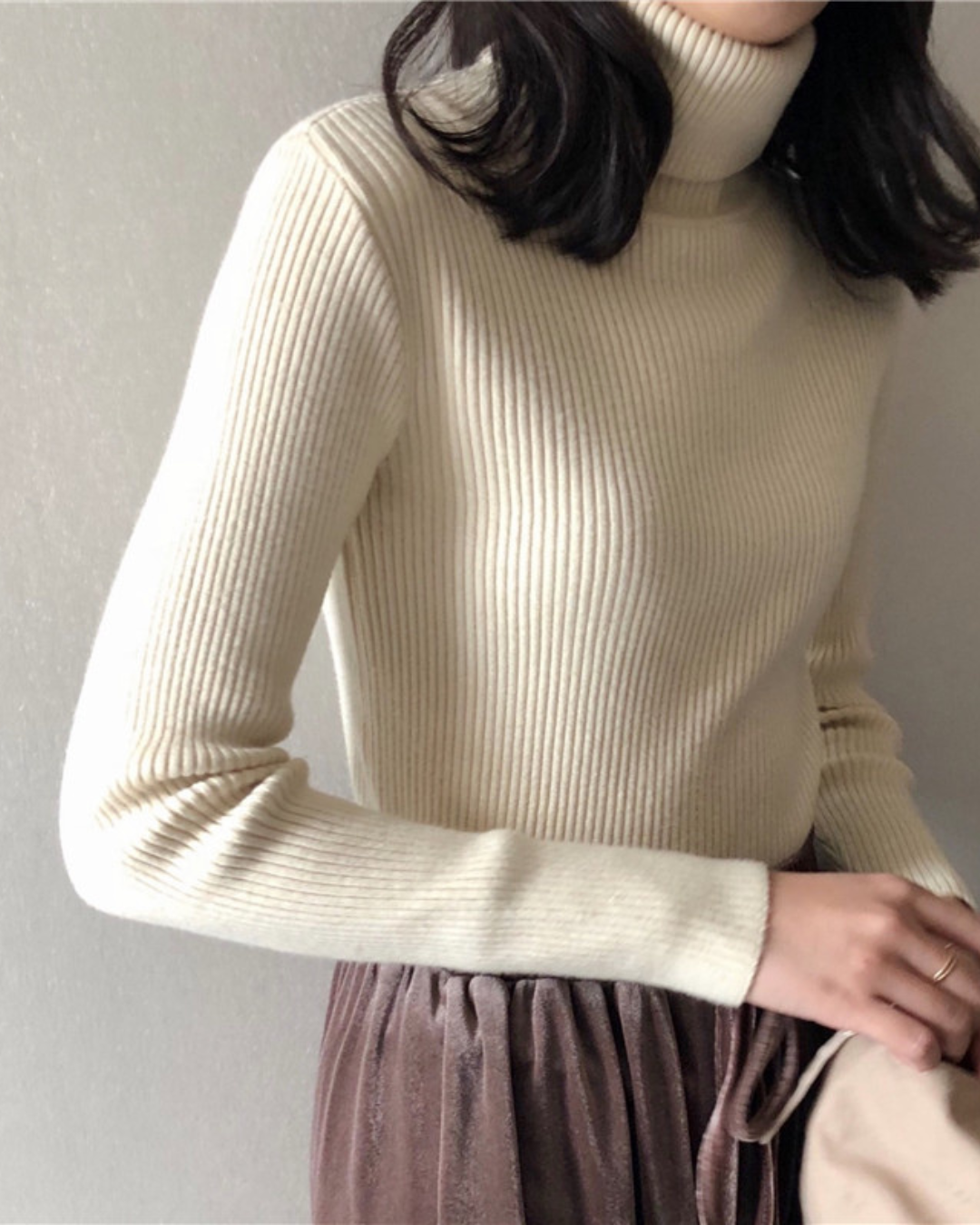 – Estilo: Pulôver com gola alta, feminino e elegante